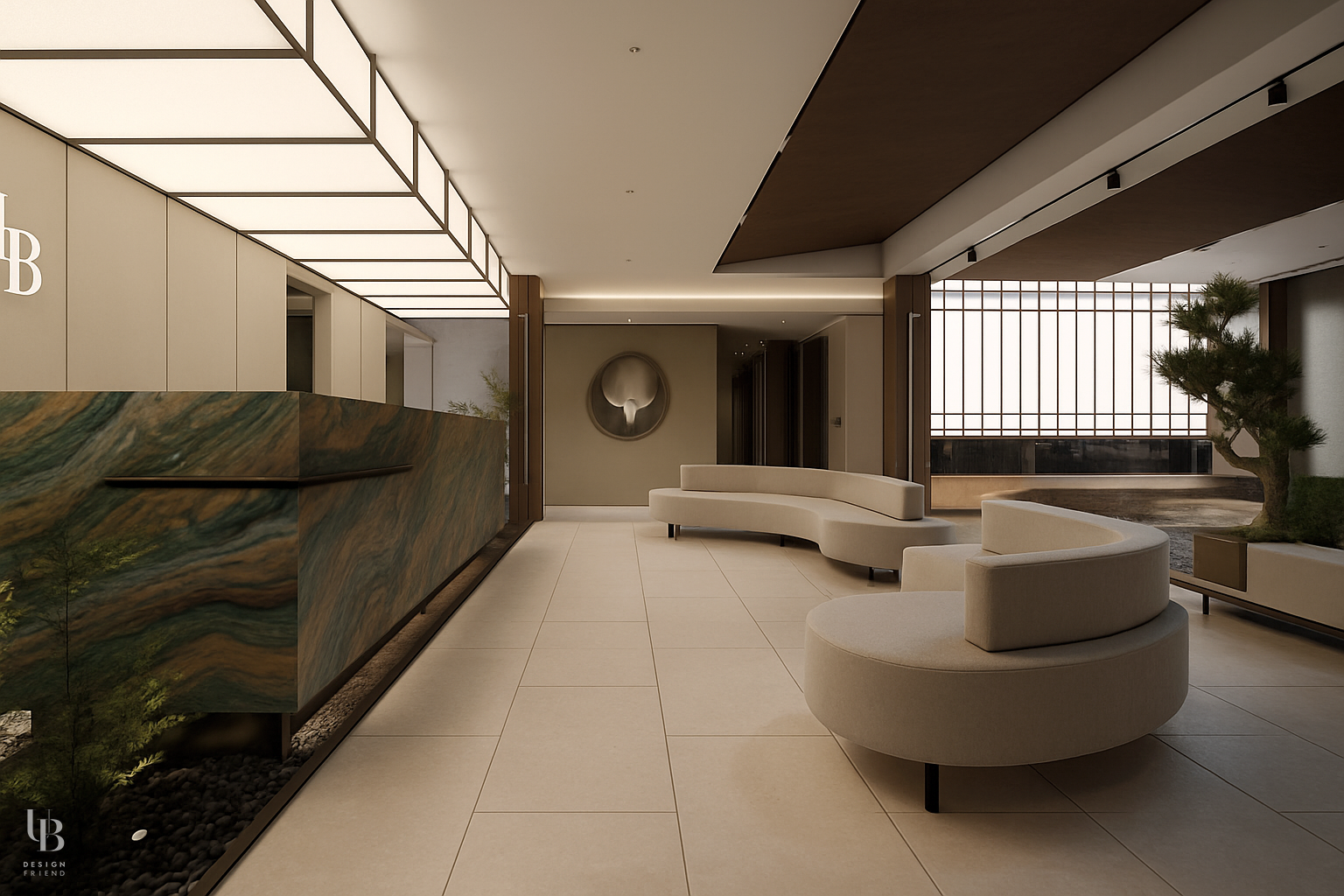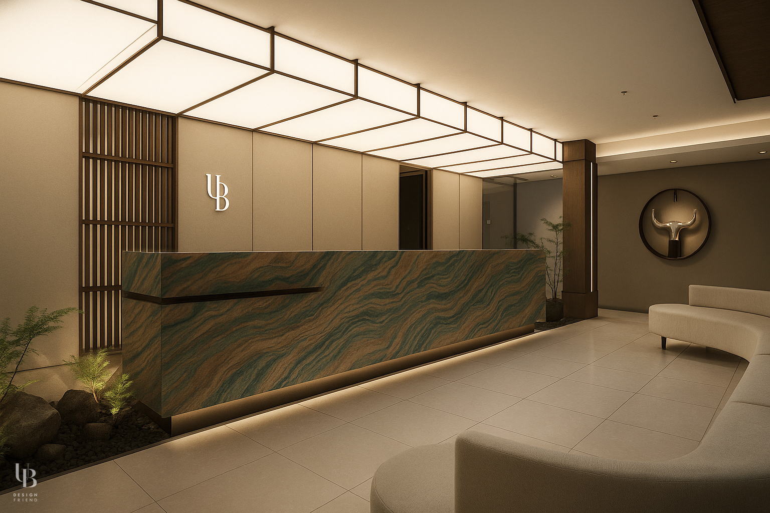 이번 프로젝트는 '아름다움은 본연의 모습'이라는 컨셉으로 전통적인 우리나라의 멋스러운 모습을 녹여낸 뷰티 피부과입니다. 대기공간엔 거울을 활용하여 거울 속에 보이는 자신의 모습은 본연의 아름다운 모습이라는 내용을 담아낸 디자인입니다.