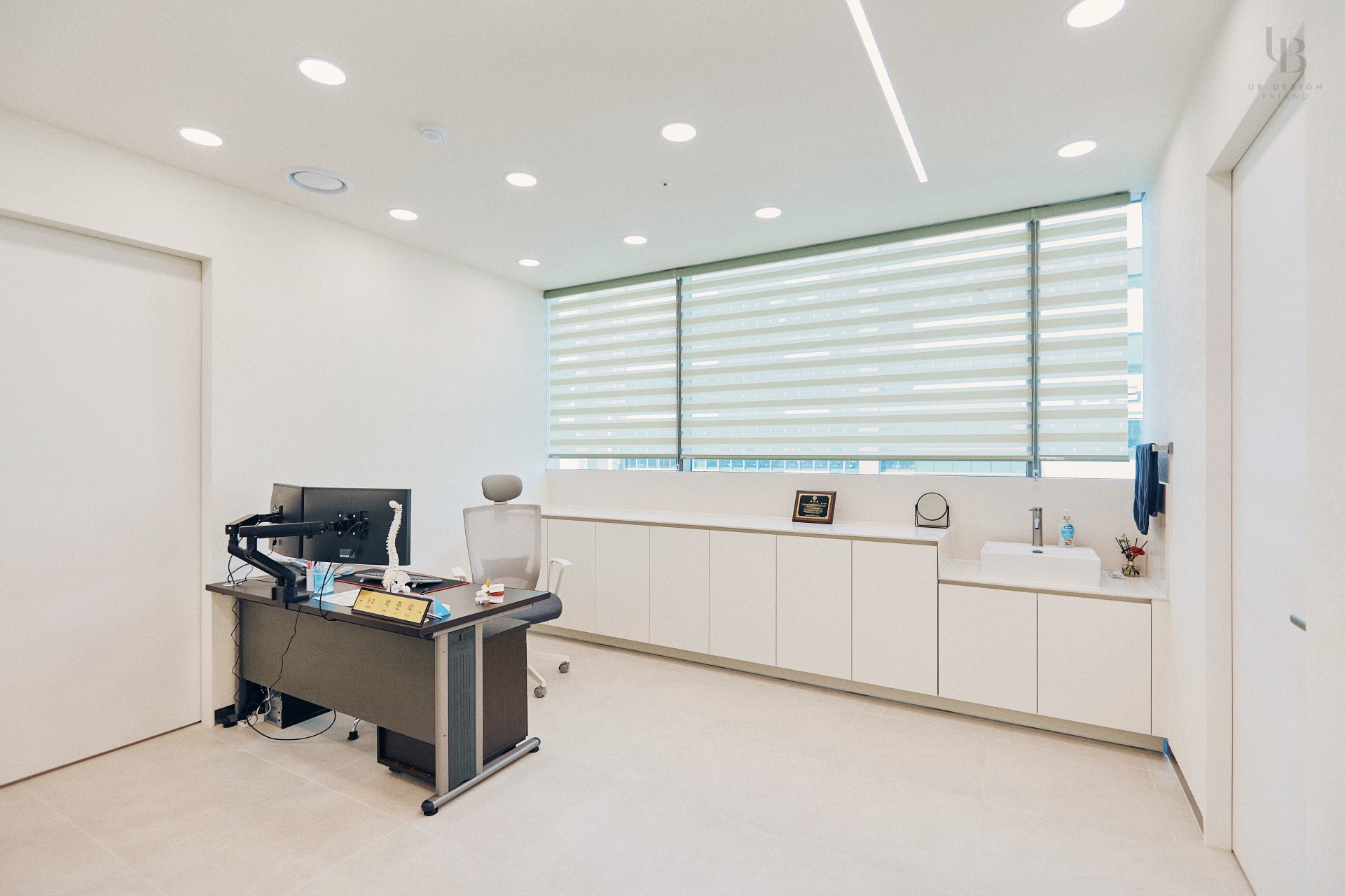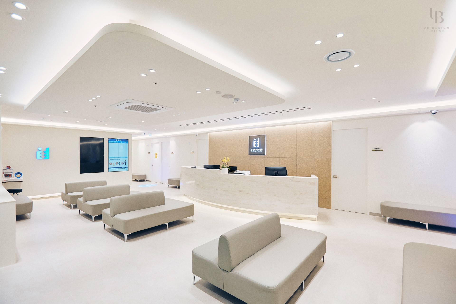 이번 프로젝트는 아이보리 톤과 간접 조명으로 따뜻하고 깔끔한 병원 디자인입니다. 곡선형 리셉션 데스크와 소파로 부드러운 첫인상을 디자인하였습니다. 기능성과 직원 및 환자 동선을 고려한 설계로 편안한 공간으로 설계하였습니다. 아이보리 컬러와 밝은 조명이 더해져 위생적이면서도 전문성이 느껴지는 병원의 이미지를 전달하고자 합니다.