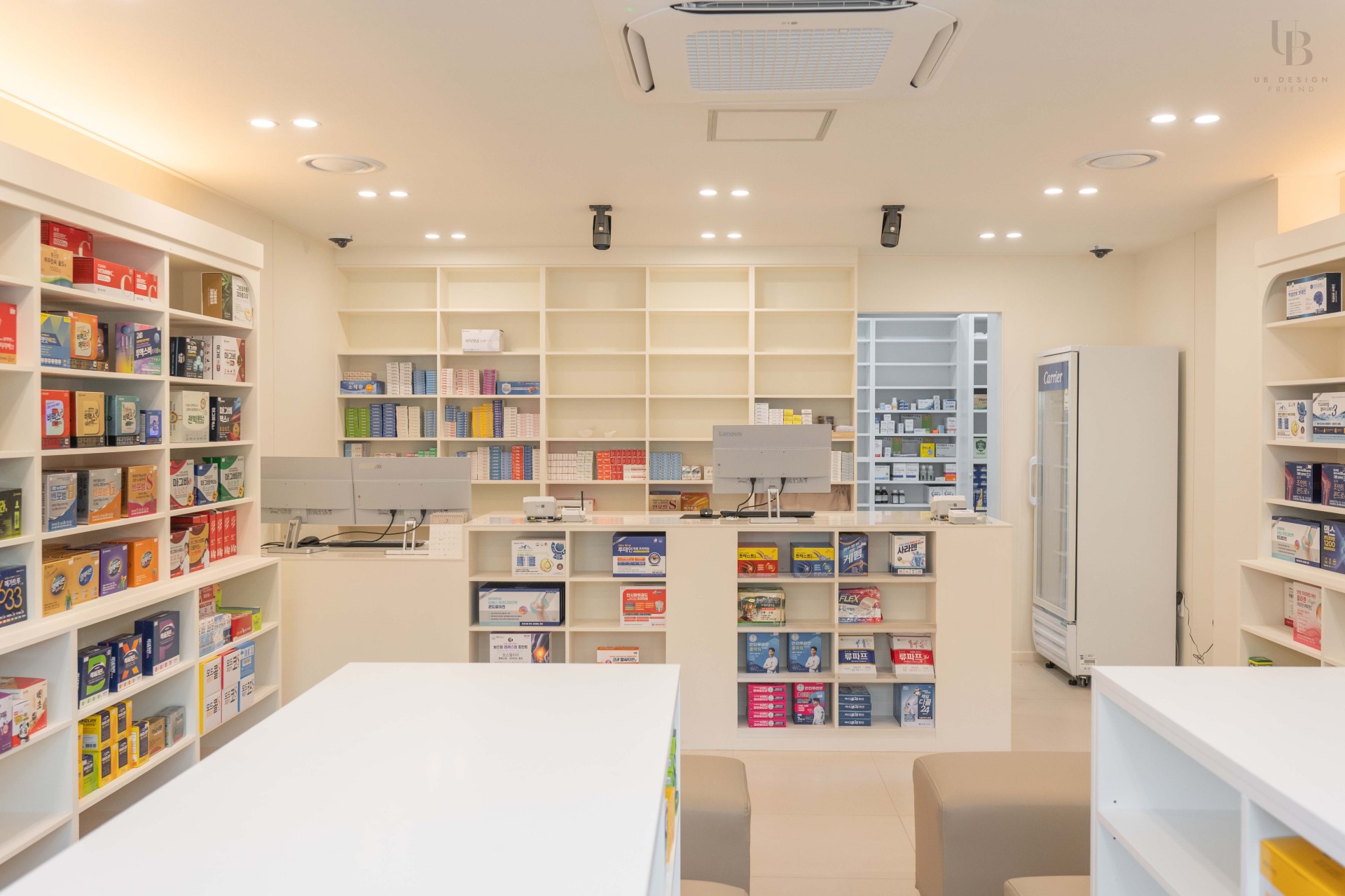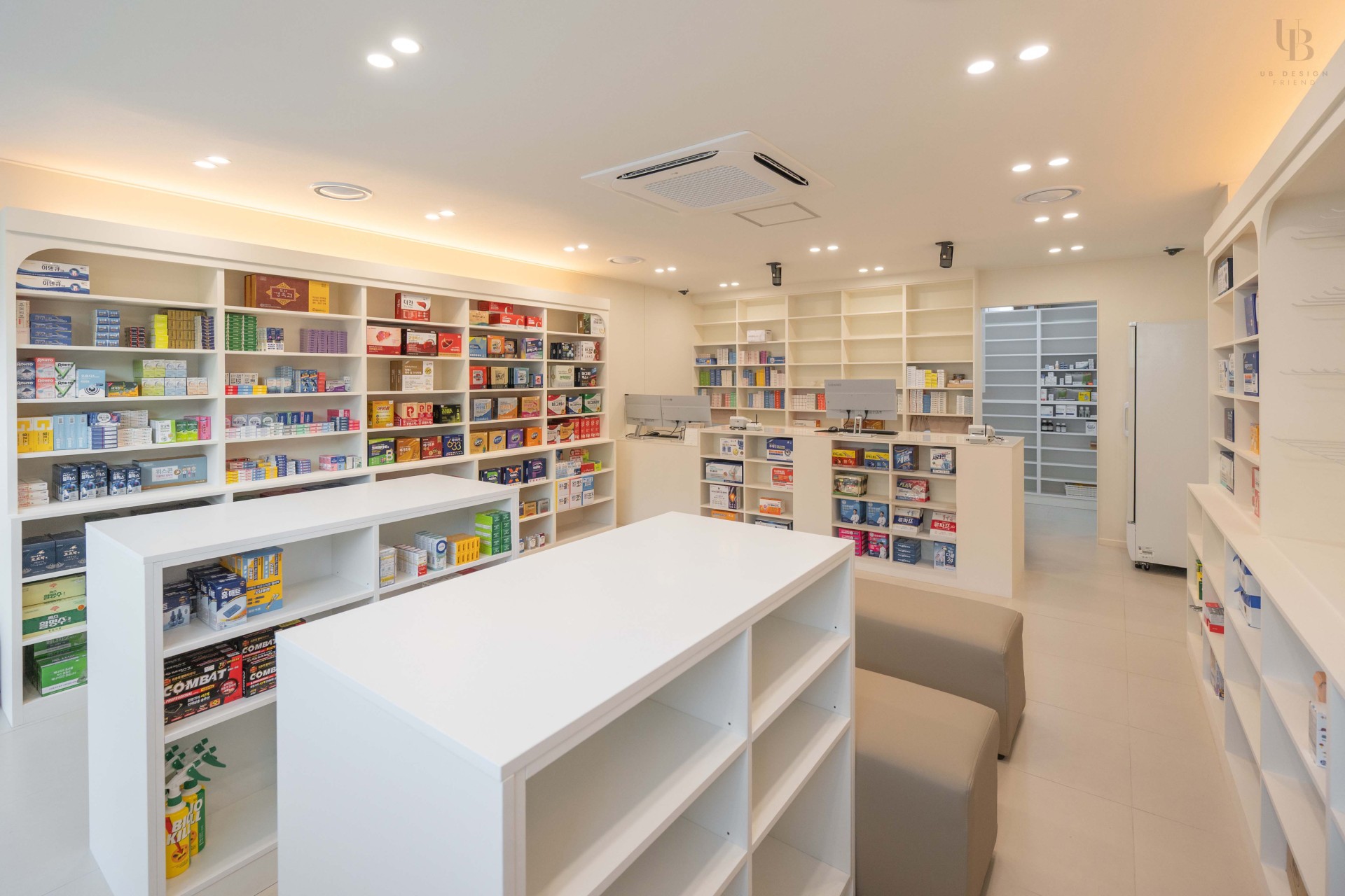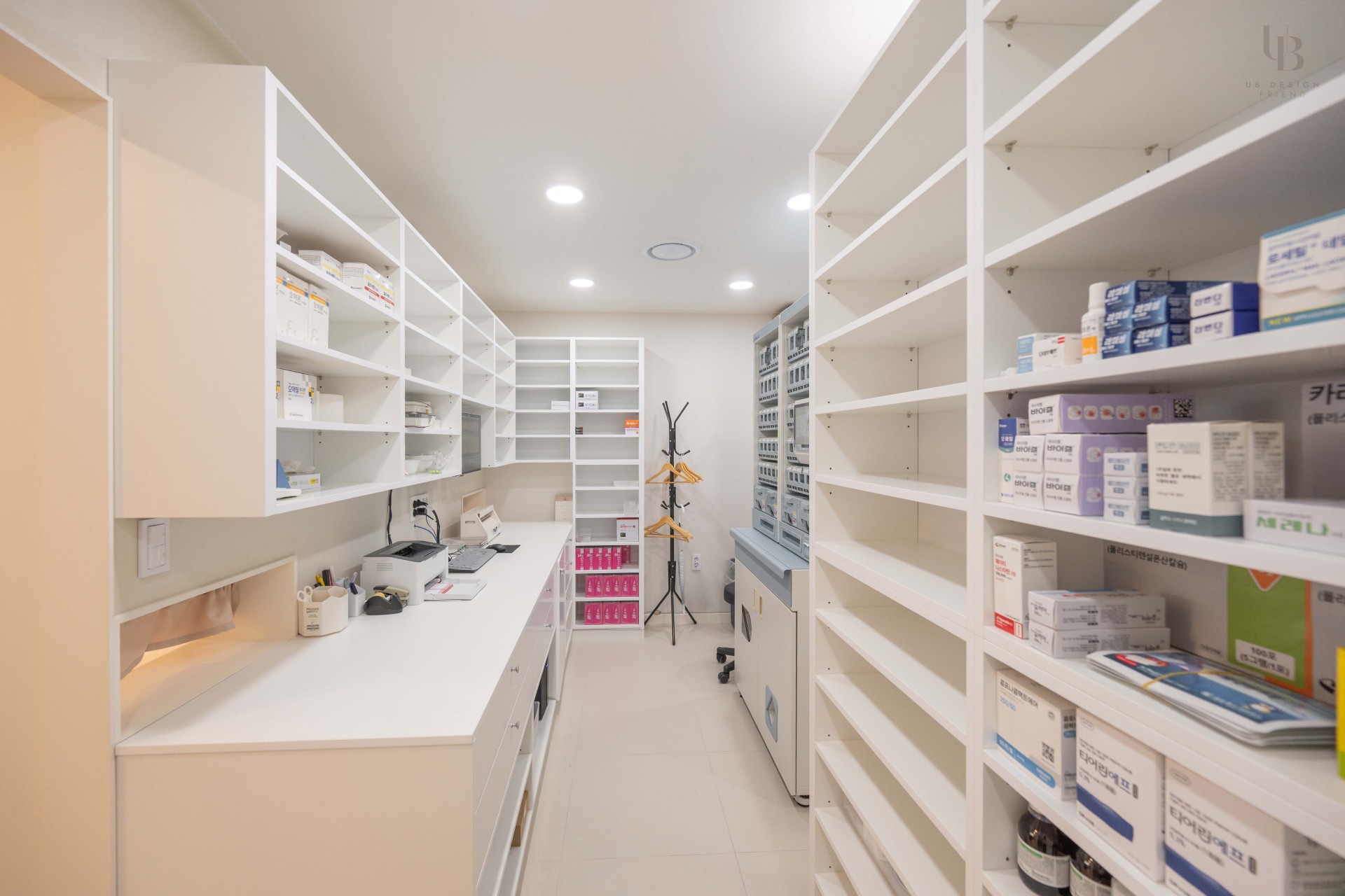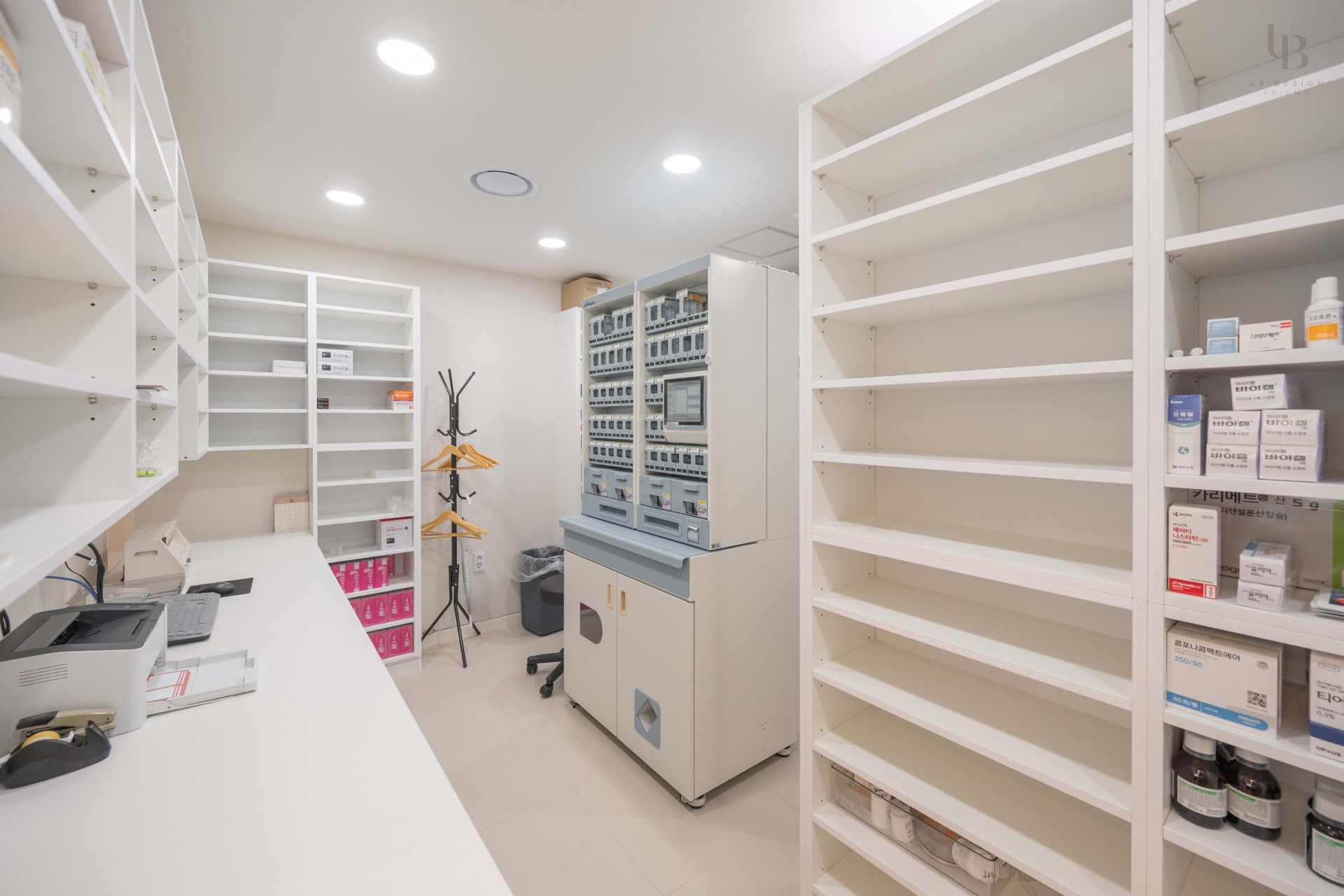 이번 프로젝트는 화이트 톤과 곡선으로 포인트를 준 병원 디자인입니다. 많은 수납 공간을 위한 약장과 진열장이 단조로우면서 효율적인 공간 활용이 가능하도록 설계하였습니다. 화이트 컬러와 밝은 톤의 소파를 더해 밝고 깨끗한 이미지를 전달하고자 합니다.