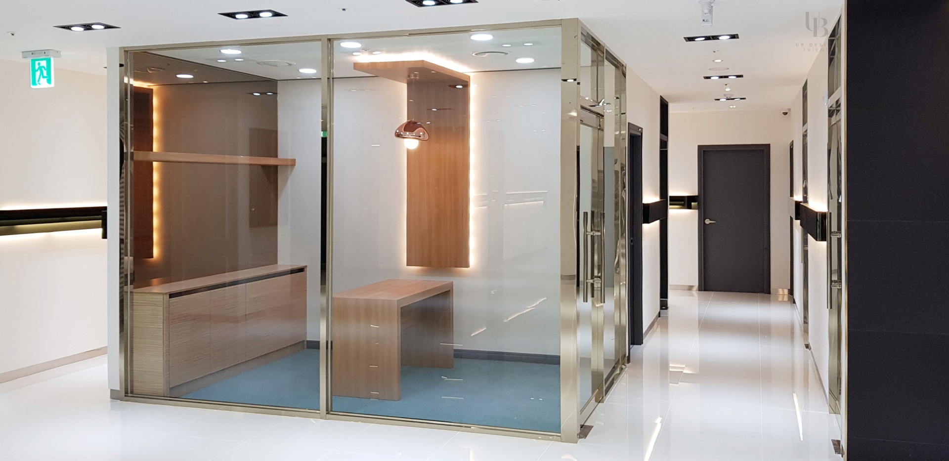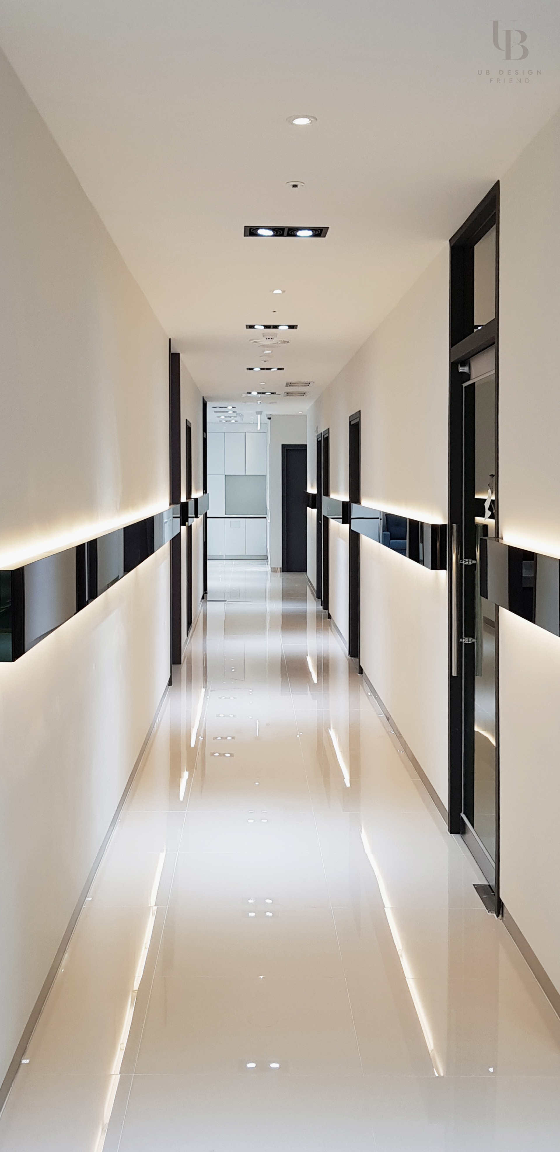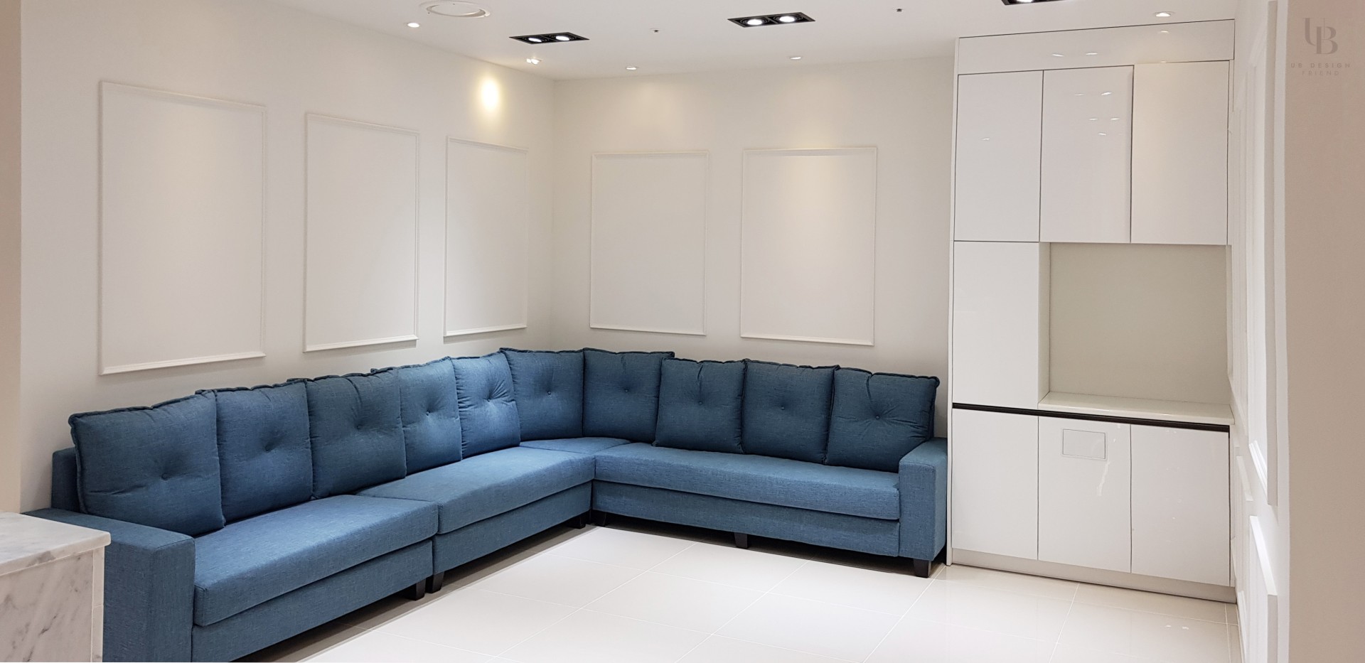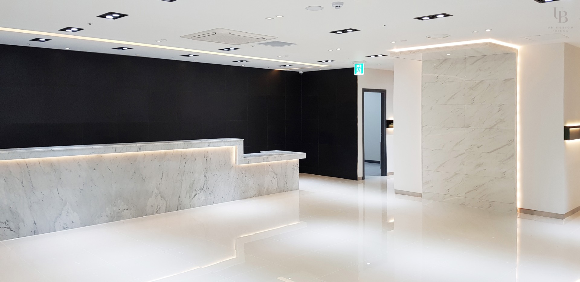 이번 프로젝트는 모던 클래식 컨셉으로 고급스러운 분위기의 피부과 디자인입니다. 네이비 컬러로 무게감을 잡고 금속 및 유광 타일의 조합으로 럭셔리한 분위기를 연출했습니다. 전체적으로 직선적인 요소를 사용하되 웨인스코팅과 화이트 톤의 벽타일이 포인트로 클래식함과 미니멀을 조합하여 트렌디한 컨셉을 녹여내고자 합니다.